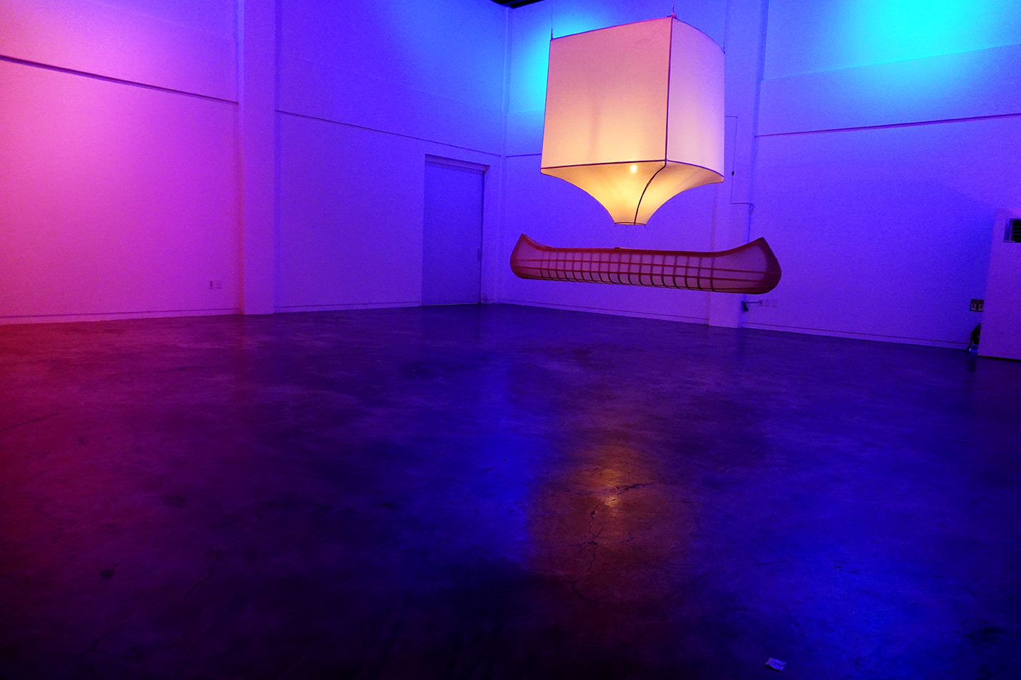 이번 전시에 소개되는 작품 <DMDLÄ: 삶으로의 항해> 는 그 파도를 타고 먼 바다로 나아가고자 하는 우리의 내적 항해를 은유한다. 전통적인 스킨온프레임 기법으로 제작된 카누와 그 위에 매달린 풍등은 삶을 변화시키기 위해 필요한 끊임없는 노력과 인내의 시간을 품은 채, 우리를 ‘아직 도달하지 못한 세계’로 안내한다.